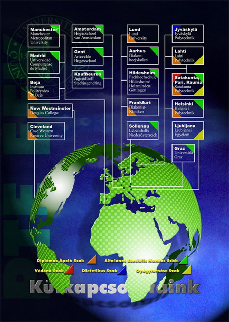 Jelenleg 12 ország, 22 partnerintézményeivel állunk kapcsolatban (Finnország, Spanyolország, Németország, Hollandia, Egyesült Királyság, Portugália, Törökország, Görögország, Ausztria, Szlovénia, Írország, Lengyelország) és átgondolt külkapcsolati stratégiánk részeként, az érintett tanszékek bevonásával fokozatosan bővítjük partnerintézményeink körét.